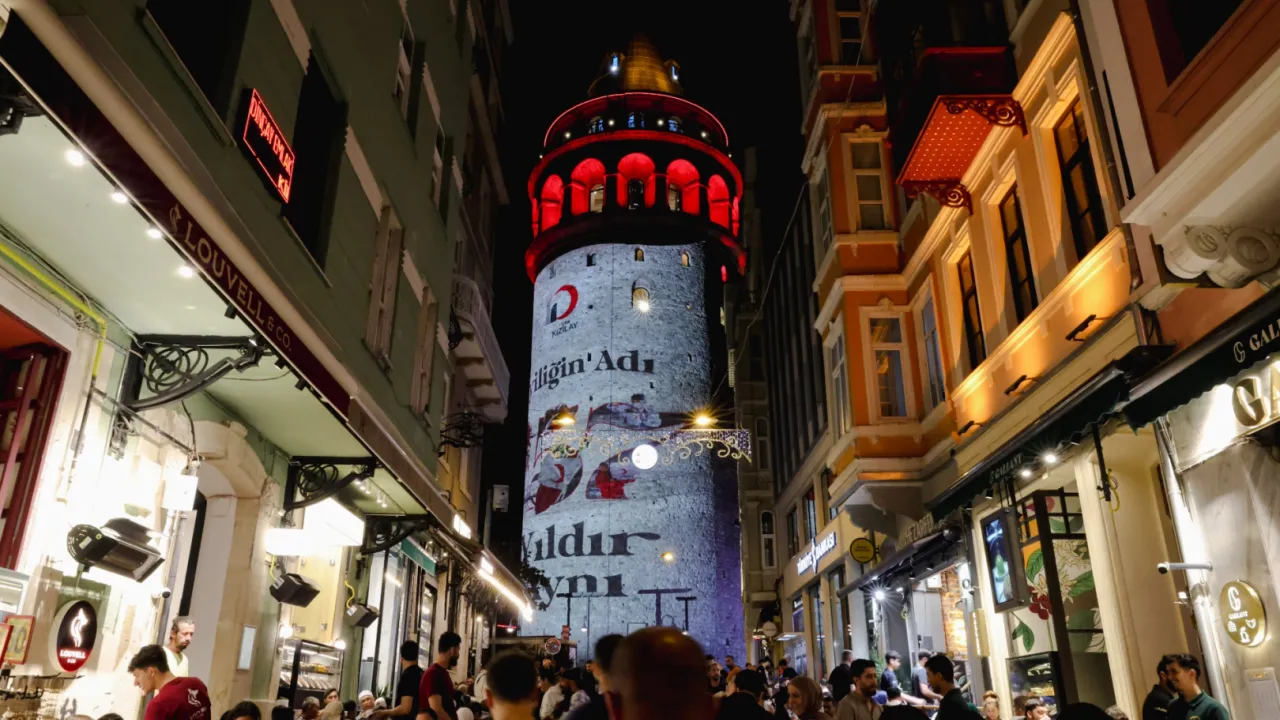 Fatih Sultan Mehmet Köprüsü, Yavuz Sultan Selim Köprüsü ve Osmangazi Köprüsü gece boyunca kırmızı ışıklarla aydınlatılırken, Galata Kulesi üzerine Kızılay’ın 157. yılına özel olarak hazırlanan görsel yansıtıldı.