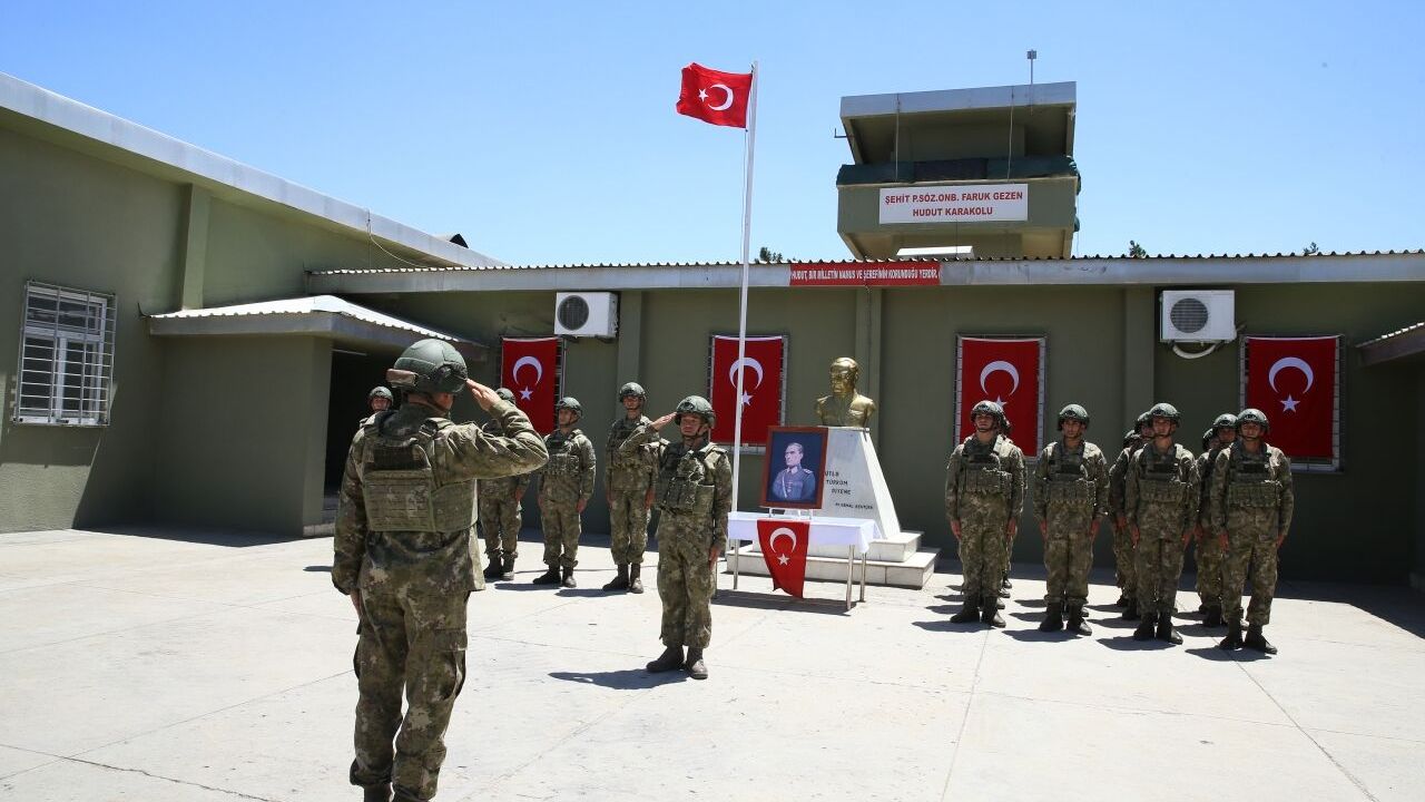 Suriye sınırında konuşlu Şehit Piyade Sözleşmeli Onbaşı Faruk Gezen Hudut Karakol Komutanlığında vatani görevini yapan askerler, elleri tetikte, gözleri hedefte 7 gün 24 saat güvenliği tesis ediyor.