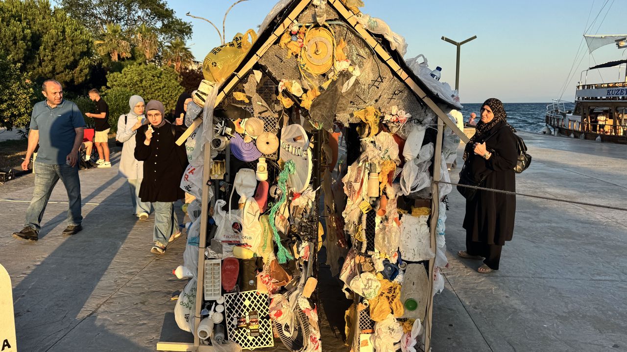 Toplanan çöplerin bir bölümü çevre ve deniz kirliliğine dikkati çekerek vatandaşlarda farkındalık oluşturmak amacıyla kentin farklı noktalarında sergilendi.