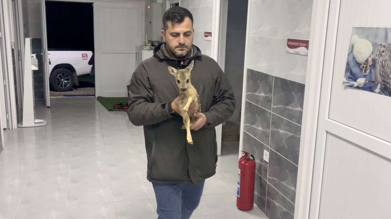 Kentte çiftçilikle uğraşan bir kişi, ormanlık alanda bitkin halde yavru karaca buldu.