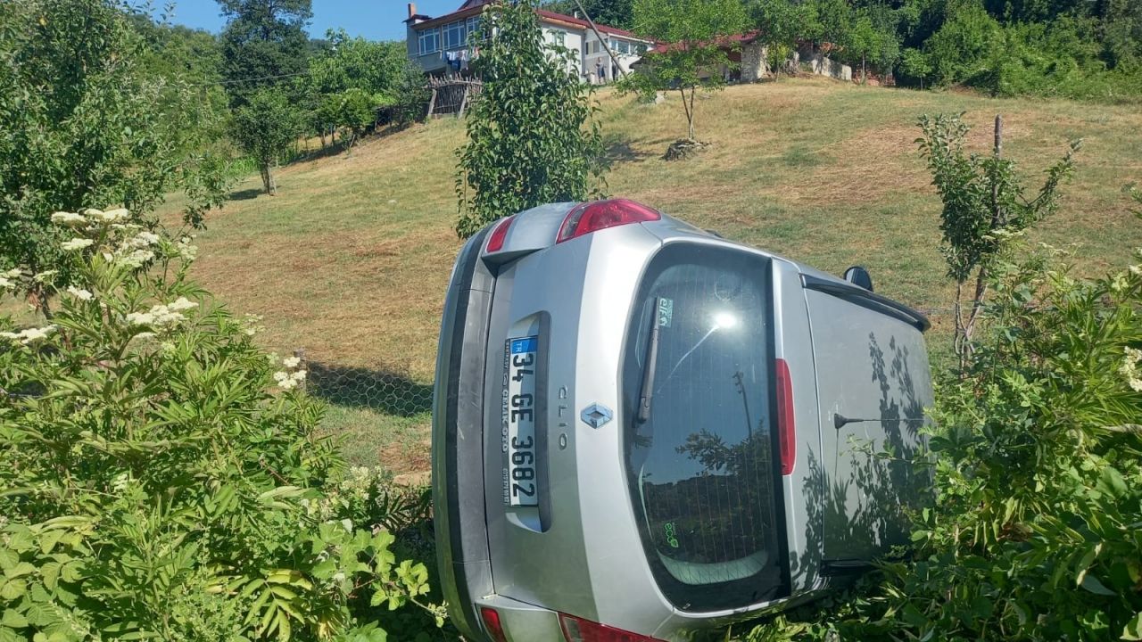 R.S. idaresindeki 34 GE 3682 plakalı otomobil, Yenikent köyünde yol kenarındaki ağaçlık alana devrildi.