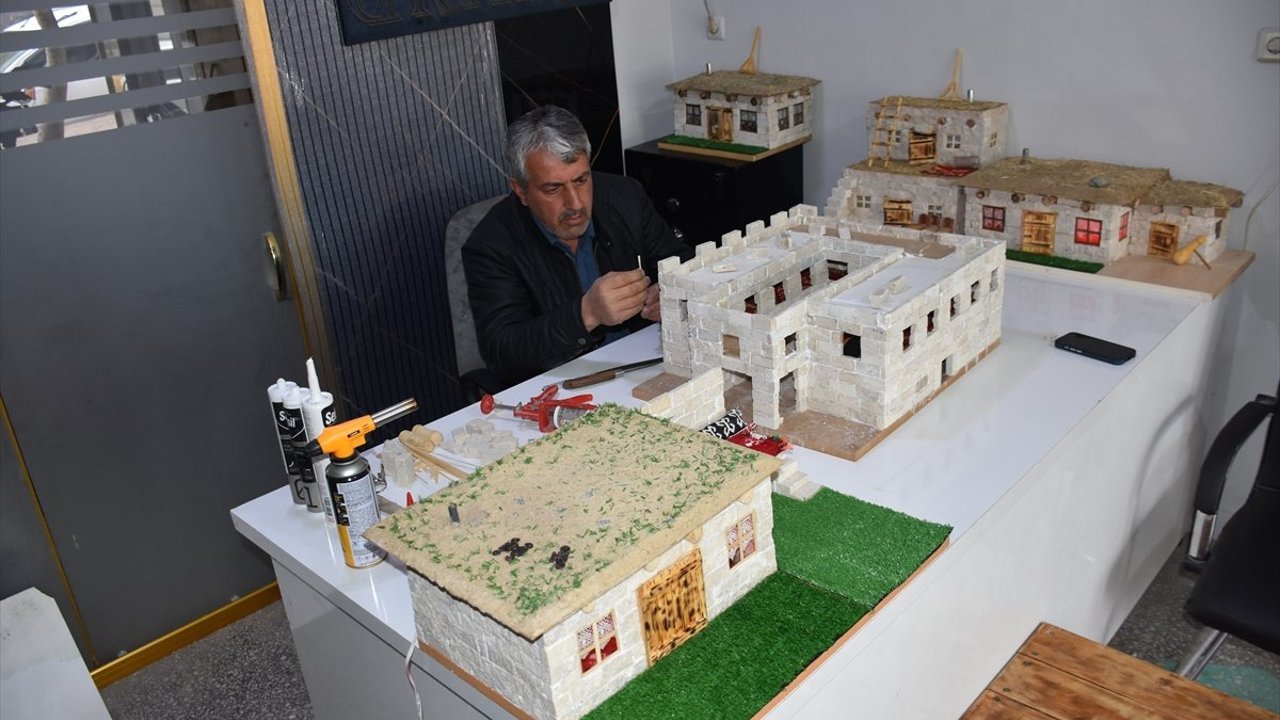 ŞIRNAK (AA) - EKREM PAYAN - Şırnaklı esnaf Nedim Bayar, kendisinin de doğup büyüdüğü, artık anılarda kalan toprak damlı taş evleri yaptığı maketlerle yaşatıyor.