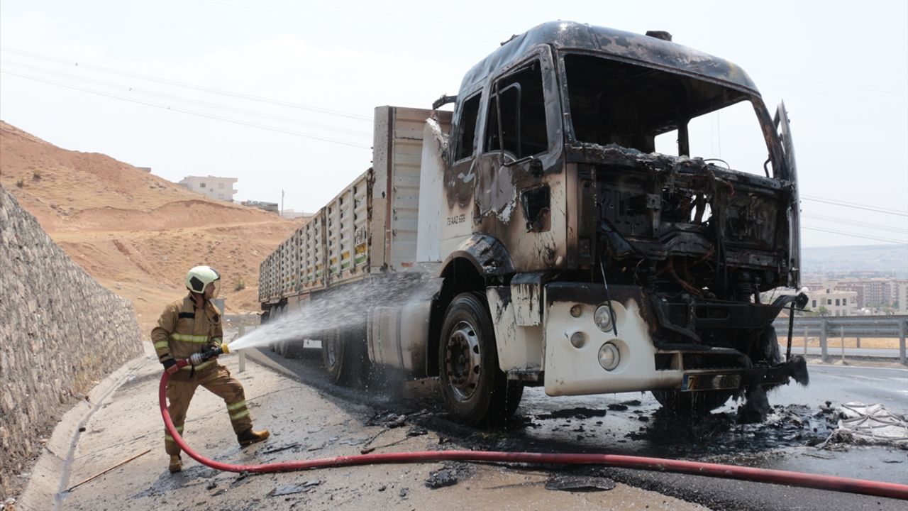 ŞIRNAK (AA) - Şırnak'ın Cizre ilçesinde seyir halindeki tırda çıkan yangın, itfaiye ekiplerince söndürüldü.