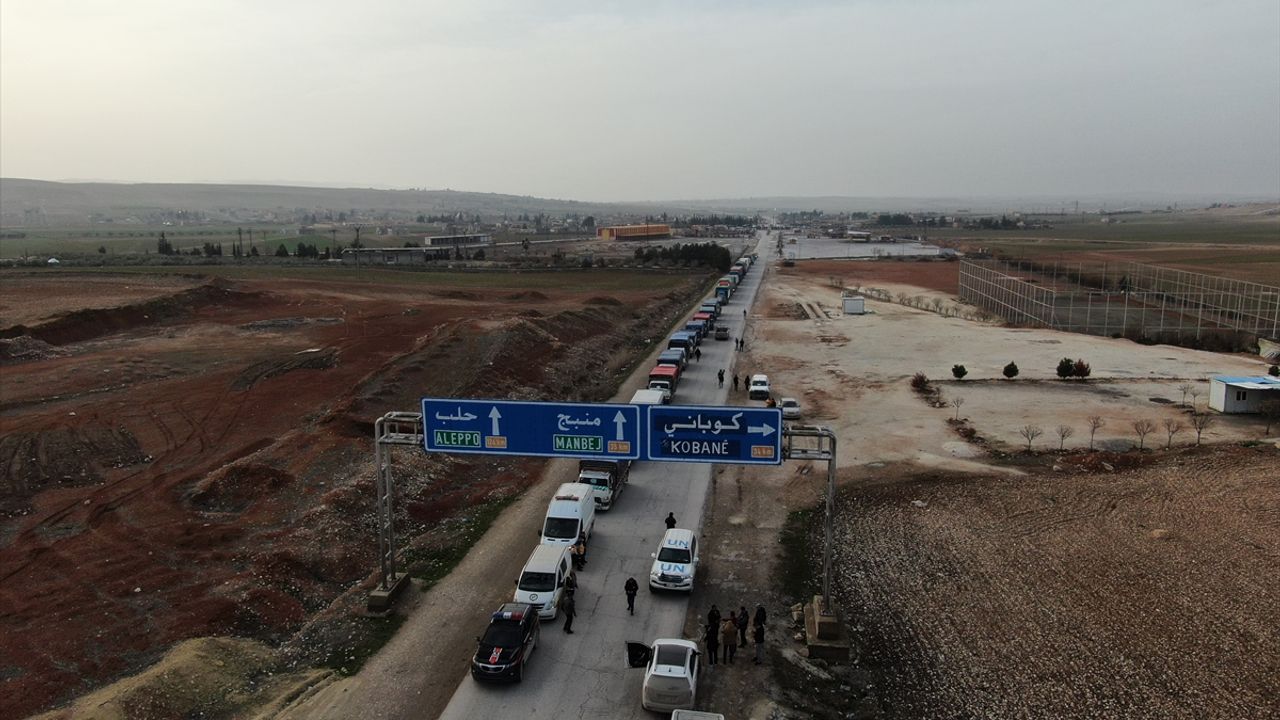 Bölgedeki AA muhabiri, Birleşmiş Milletler'e bağlı farklı kuruluşlara ait pankartların asılı olduğu 24 kamyonetten oluşan insani yardım konvoyunun da aynı şekilde köye giriş yaptığını aktardı.