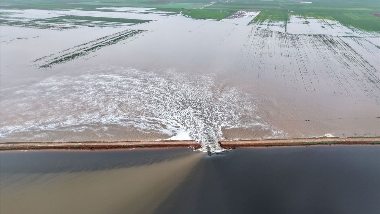 İDLİB (AA) - Suriye'nin kuzeybatısındaki İdlib iline bağlı Ebu Zuhur'un doğusundaki Cezraya beldesinde bulunan sulama göleti sağanak nedeniyle patladı ve yüzlerce dönüm tarım arazisi su altında kaldı.