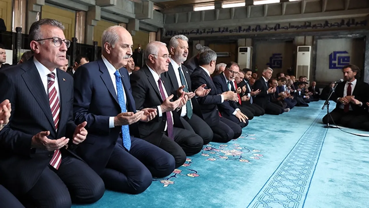 Türkiye Büyük Millet Meclisi (TBMM) Başkanı Numan Kurtulmuş, 15 Temmuz Demokrasi ve Milli Birlik Günü dolayısıyla TBMM Camii’nde şehitler için düzenlenen Mevlid-i Şerif Programı’na katıldı.ANKARA (İGFA) - TBmm Camii'nde düzenlenen programda 15 Temmuz 2016’da Fetullahçı Terör Örgütü'nün (FETÖ) hain darbe girişiminde şehit olan güvenlik güçleri ve vatandaşlar dualarla anıldı.