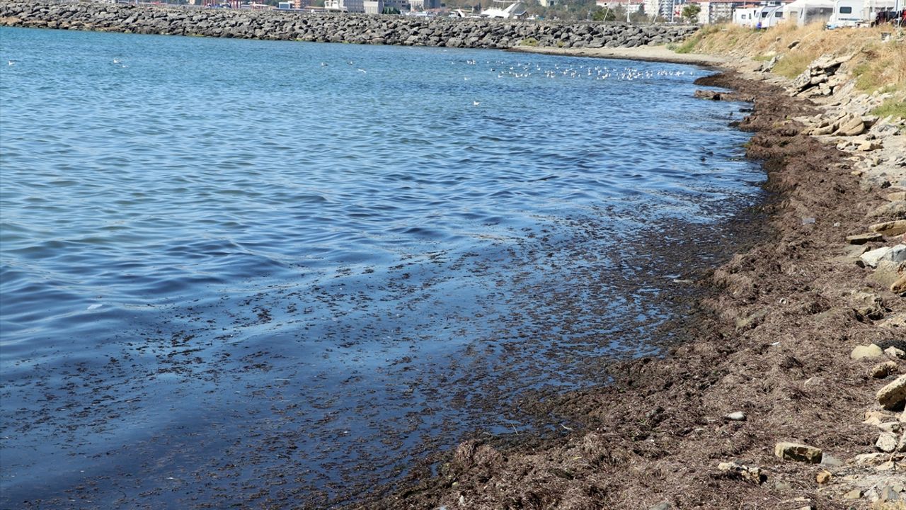 TEKİRDAĞ (AA) - Tekirdağ'da kuvvetli rüzgar nedeniyle sahilin bir kısmında kırmızı yosun birikti.