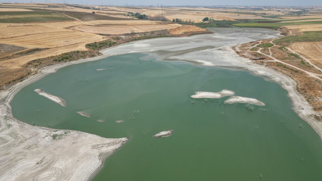 TEKİRDAĞ (AA) - Tekirdağ'ın Marmaraereğlisi ilçesindeki Türkmenli Göleti'nin su seviyesi, yaşanan kuraklık nedeniyle ciddi oranda azaldı.