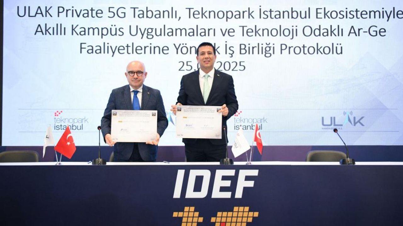 İDEF 2025 kapsamında Teknopark İstanbul ile milli haberleşme teknolojileri alanında önde gelen şirketlerden ULAK Haberleşme AŞ arasında işbirliği protokolü imzalandı. Protokol, Teknopark İstanbul’un dijital dönüşüm sürecinde Private 5G altyapısı ile güçlendirilmesini ve akıllı kampüs uygulamalarının hayata geçirilmesini hedefliyor.