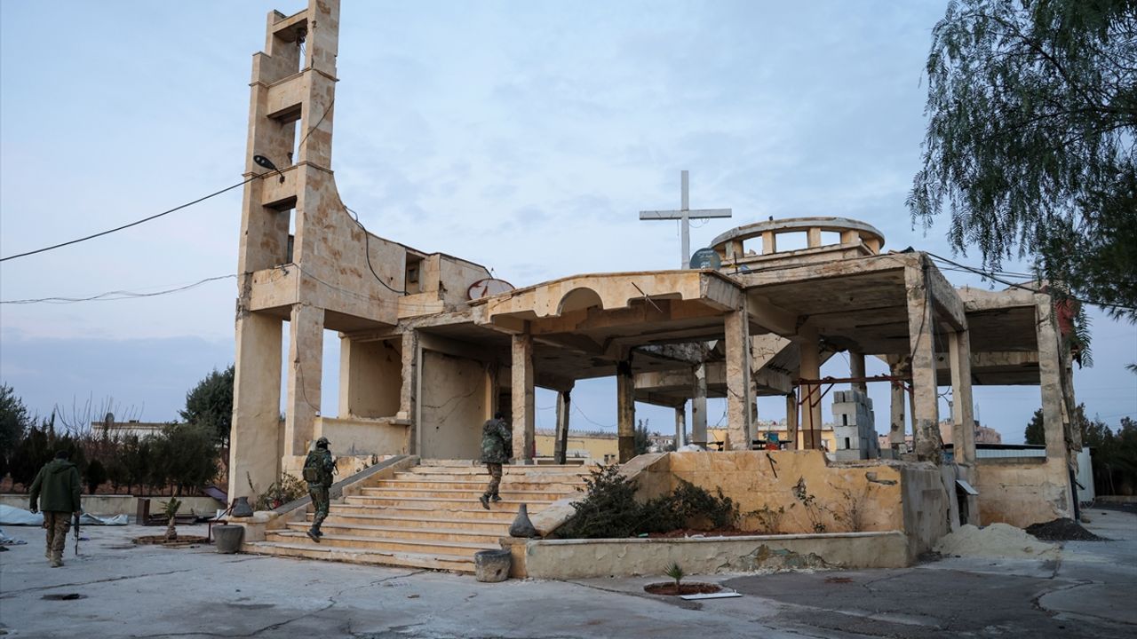 Tabka beldesinde terör örgütü YPG'nin tünel kazdığı diğer bir nokta DEAŞ'ın burayı ele geçirdiği 2014'te patlattığı bir kilisenin altı. Kilisenin yıkık iskeleti, üzerindeki hac ayakta duruyor buna karşın alt kata inildiğinde burada terör örgütü YPG'nin mabedin altına kazdığı tünelin girişi bulunuyor.