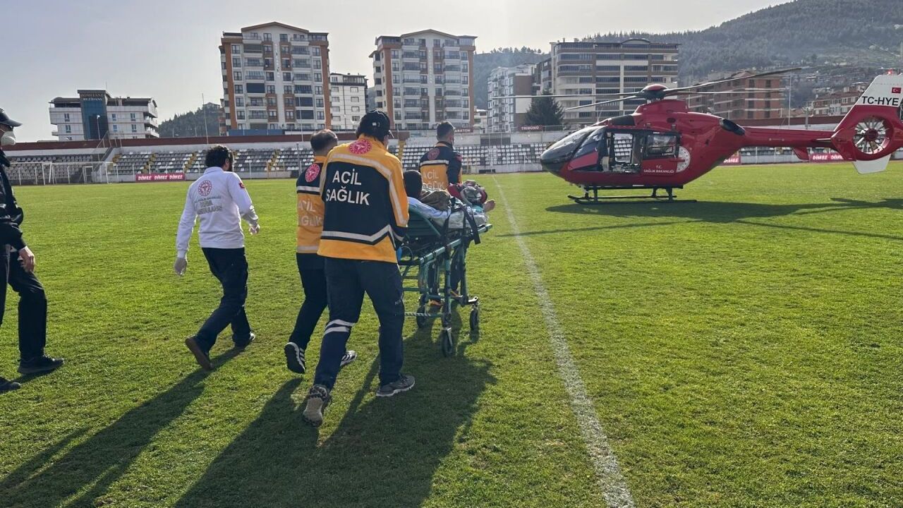 Ambulansla Gaziosmanpaşa Stadyumu'na getirilen genç, ekiplerce helikoptere nakledildi.