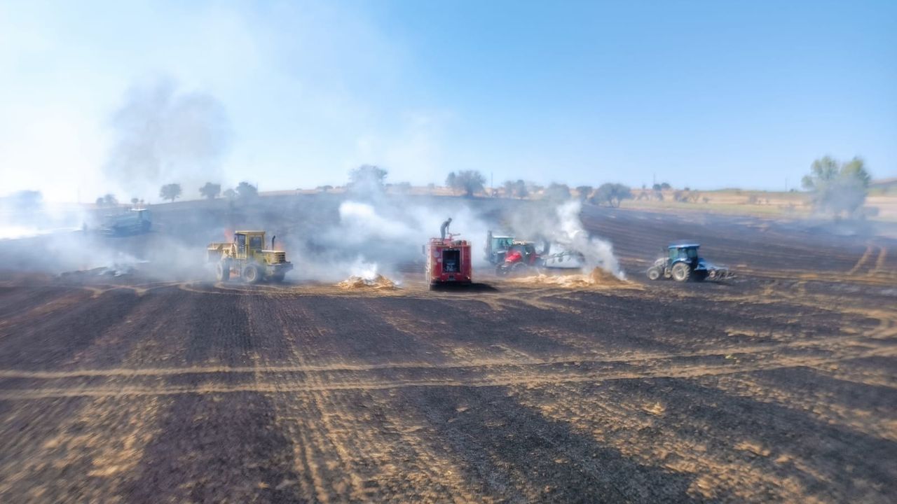 İlçeye bağlı Taşpınar köyündeki tarlada bilinmeyen nedenle yangın çıktı.