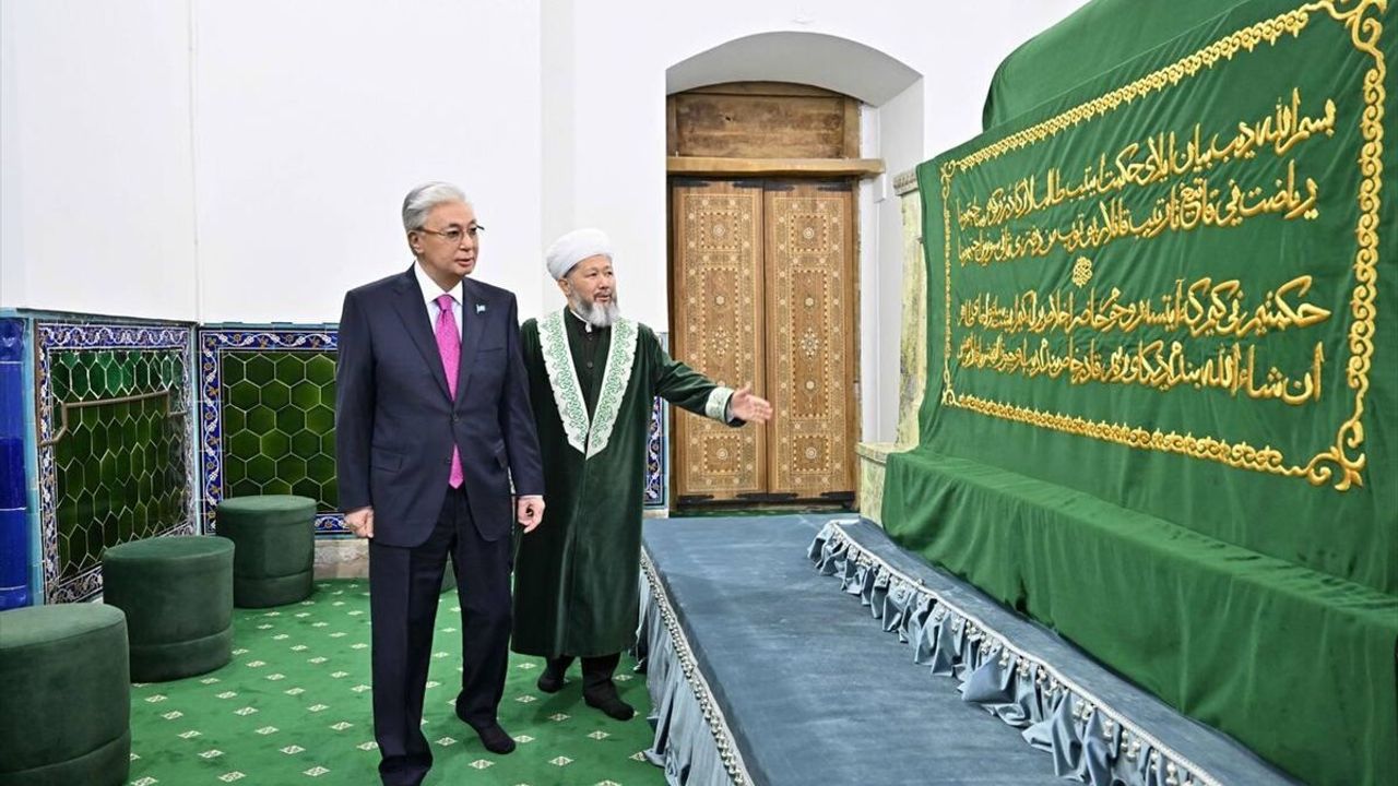 Hoca Ahmet Yesevi'nin büyük mirasının bu kadim şehrin manevi hazinesi olduğuna dikkati çeken Tokayev, 'Yesevi'nin türbesi, Türk dünyasının sarsılmaz birliğinin simgesidir. Burada, isimleri Kazak tarihine altın harflerle yazılmış büyük şahsiyetler ebedi istirahatgahlarına kavuşmuştur.' dedi.