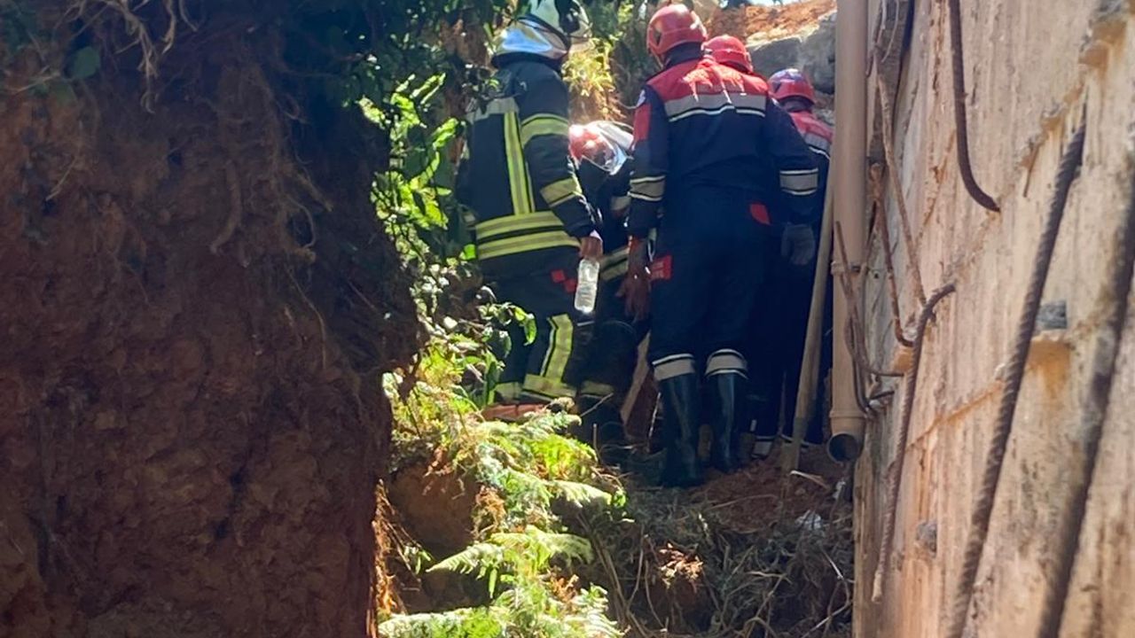 Kumludere Mahallesi'ndeki bir evin arka kısmında yapılan çalışma sırasında toprak kayması meydana geldi.