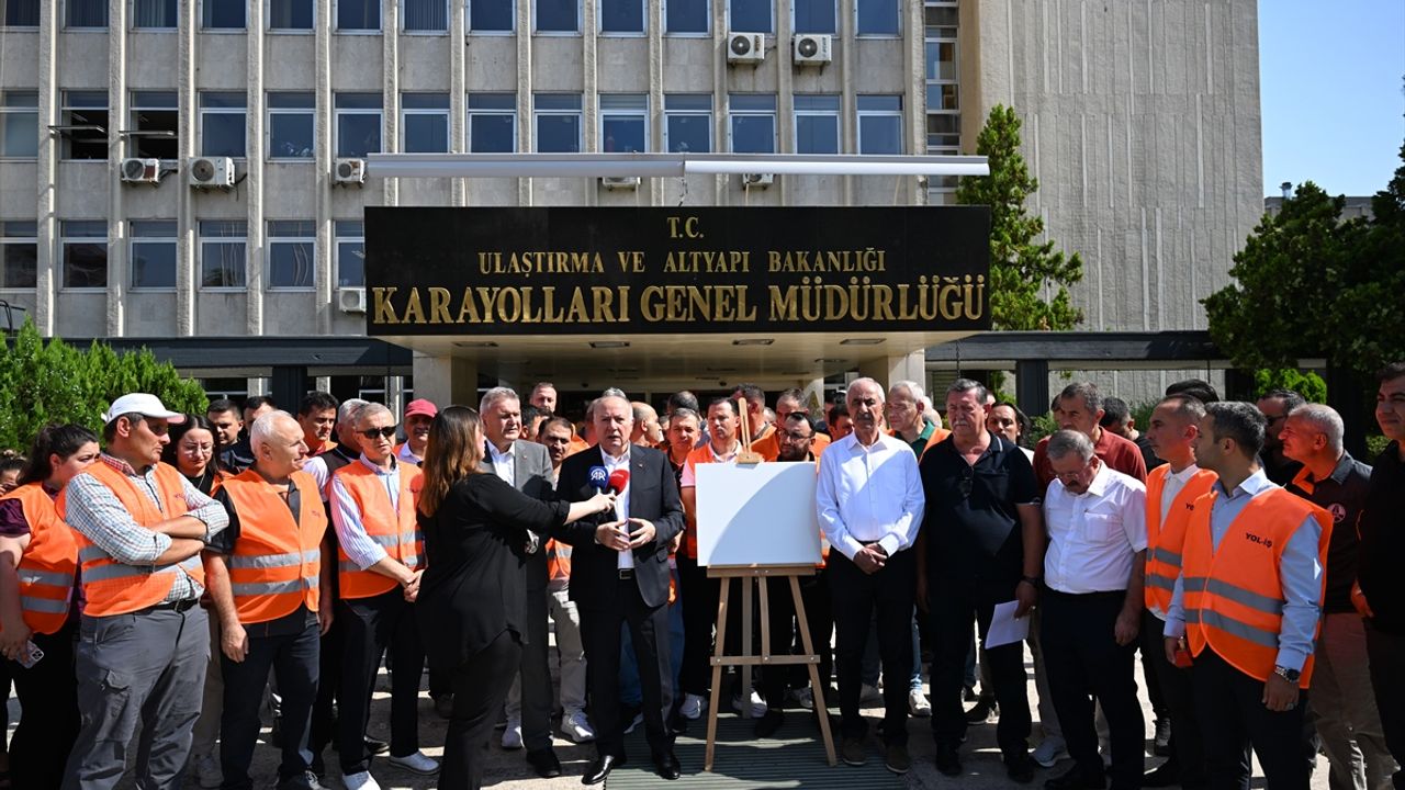 Türkiye İşçi Sendikaları Konfederasyonuna (TÜRK-İŞ) bağlı Yol-İş Sendikası üyesi işçiler, Karayolları Genel Müdürlüğü önünde bir araya geldi.