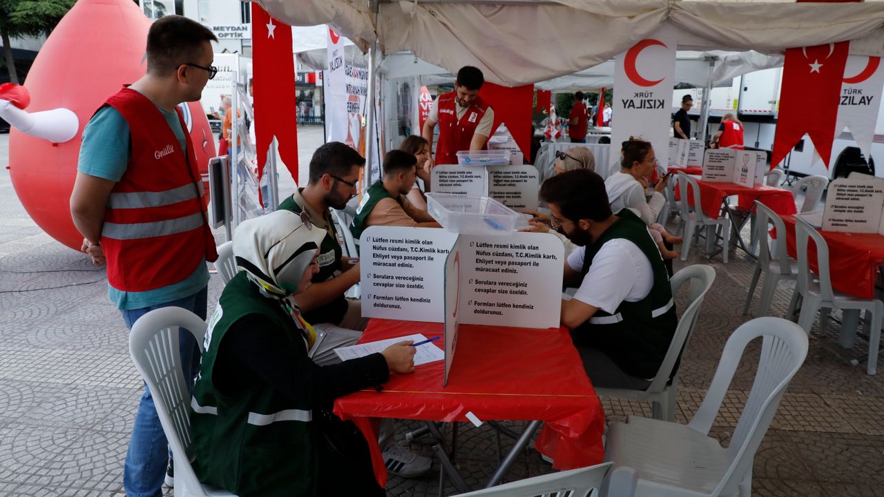 Yeşilay Samsun Şube Başkanı Emre Güneş ve beraberindeki gönüllüler de kan vererek kampanyaya destek oldu.