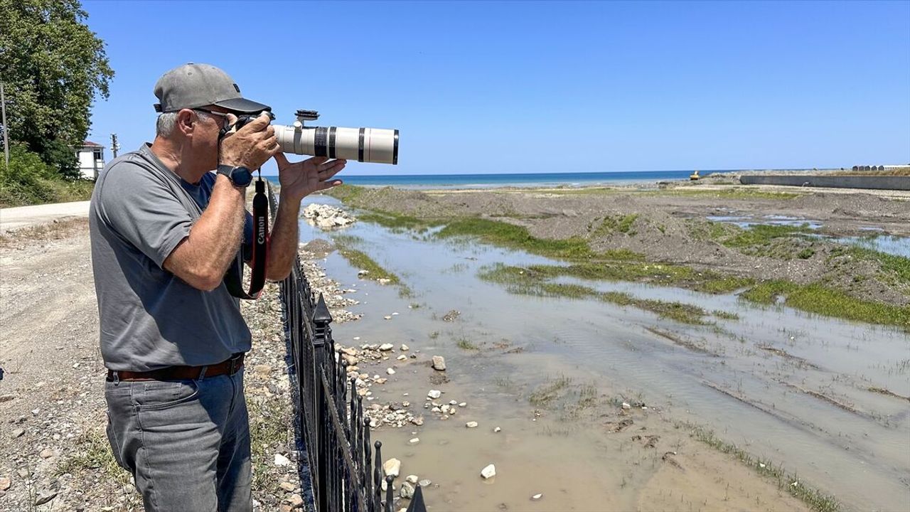 Doğa fotoğrafçısı Mehmet Şenol, çay yatağında kuş gözlemi yaptığı sırada kara leylek gördü. Bir süre kuşu gözlemleyen Şenol, daha sonra türü görüntüleyerek kayıt altına aldı.