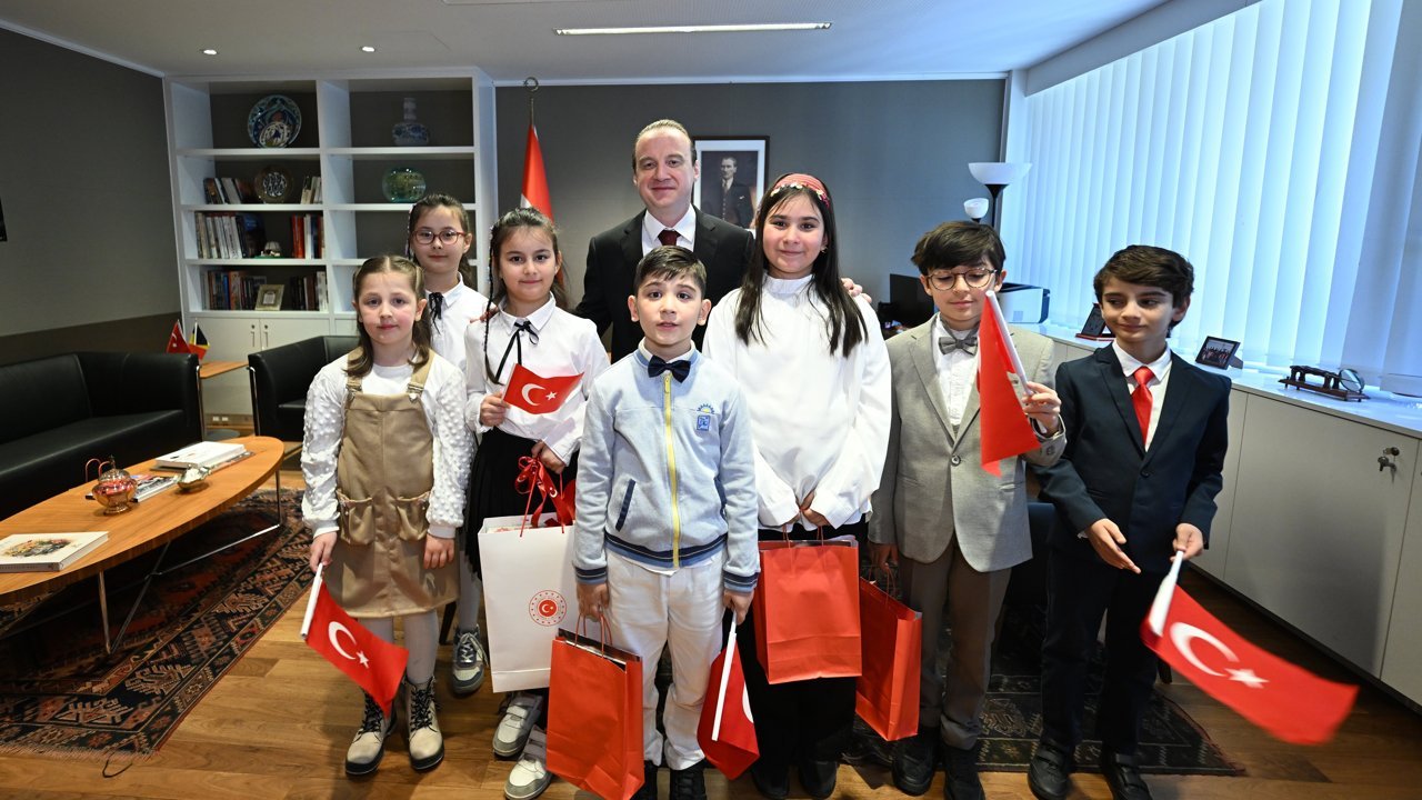 BRÜKSEL (AA) - Türkiye'nin Brüksel Büyükelçiliğinde 23 Nisan Ulusal Egemenlik ve Çocuk Bayramı kutlamaları kapsamında, Büyükelçilik, Başkonsolosluk ve Eğitim Müşavirliği makamları, temsili olarak Belçika'daki Türk toplumundan çocuklara devredildi.