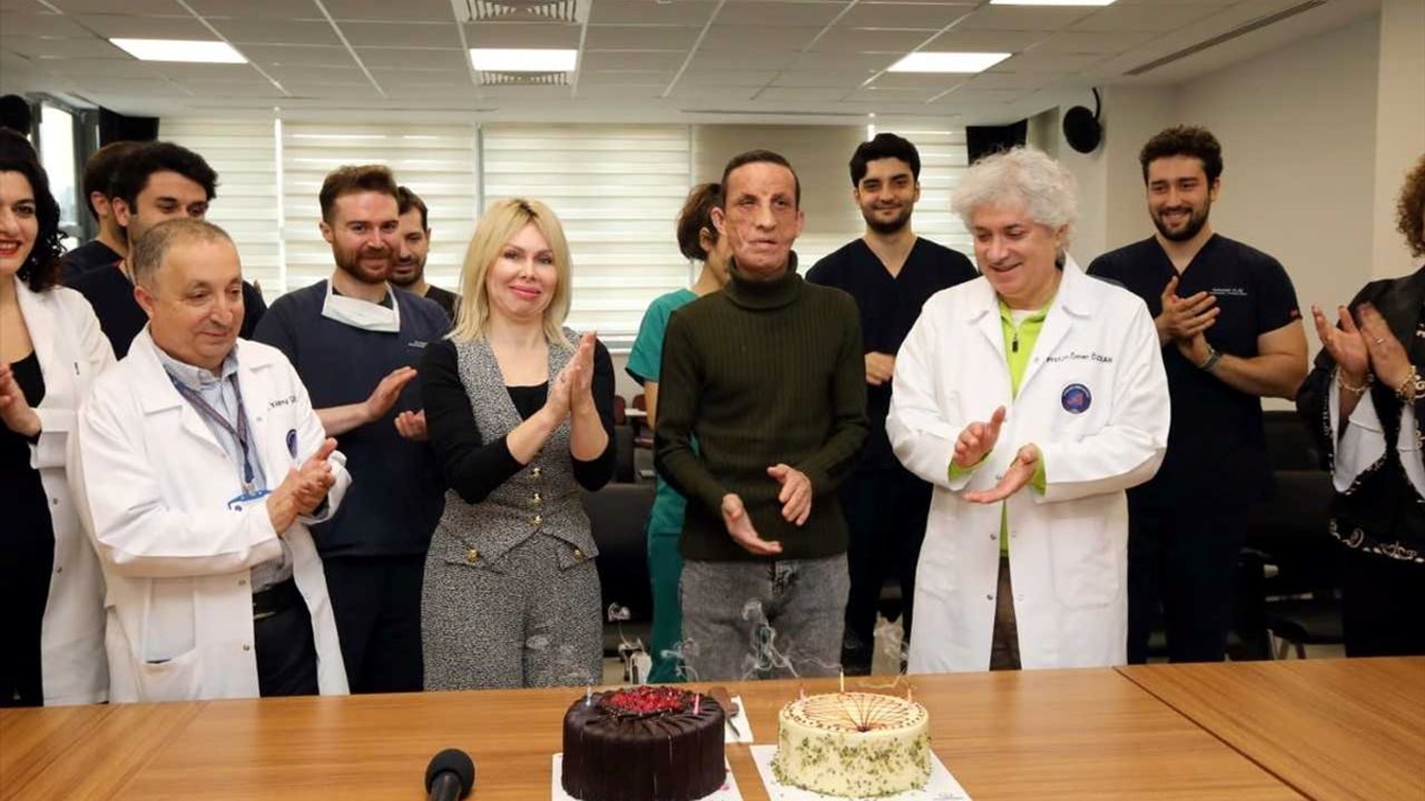 ANTALYA (AA) - Türkiye'de ilk yüz naklinin yapıldığı Uğur Acar, yeni hayatına başlamasının 14'üncü yılını, nakli gerçekleştiren doktorlarıyla pasta keserek kutladı.