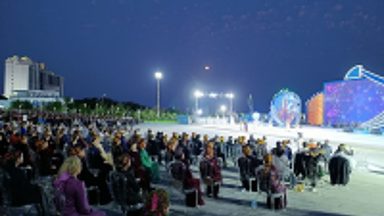 Türkmenistan'daki toplantının 3. gününde, çeşitli sektörlerden uzmanlar ve bürokratların katıldığı oturumların ardından, Avaza'nın sahil bölgesindeki parkta kültürel etkinlikler yapıldı.