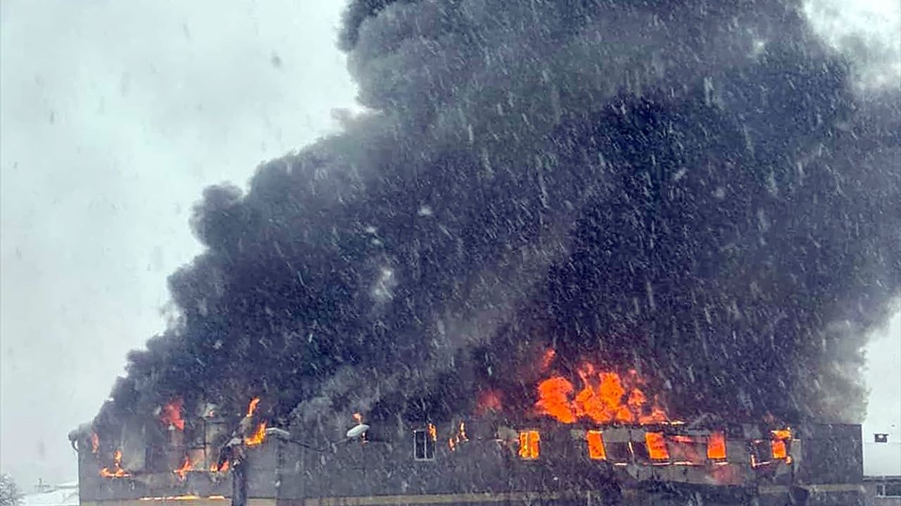 Yangın nedeniyle gökyüzünü siyah duman kapladı.