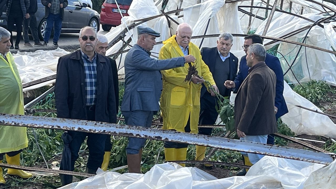 Çeşitli temaslarda bulunmak üzere Antalya'ya gelen Bayraktar, Kumluca'da geçtiğimiz günlerde yaşanan sel, su baskını ve hortumdan zarar gören sera ve tarım arazilerini ziyaret etti.