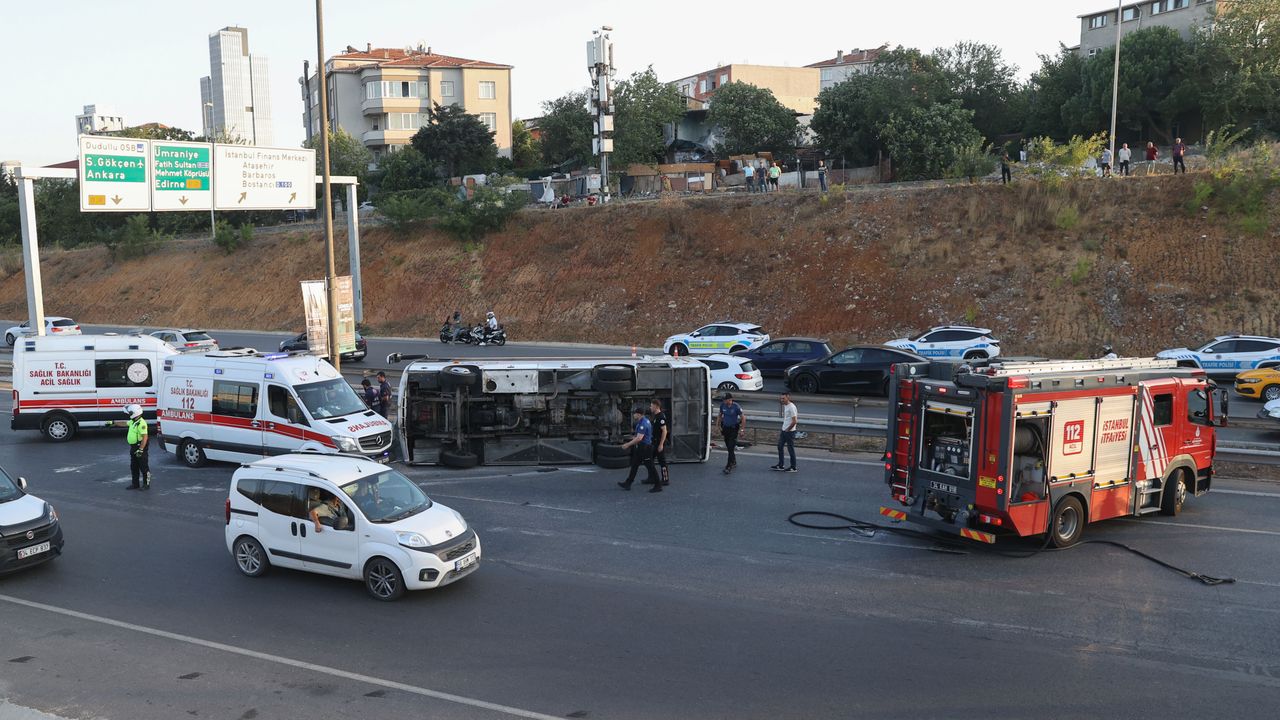 İSTANBUL (AA) - Ümraniye TEM Otoyolu'nda servis aracı devrildi.