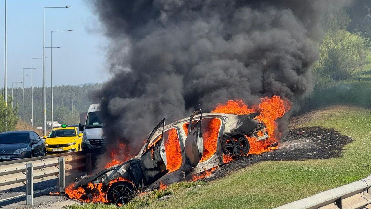 Sürücü kazada yara almazken, otomobil alev alarak yanmaya başladı. İhbar üzerine olay yerine itfaiye ve trafik ekipleri sevk edildi.