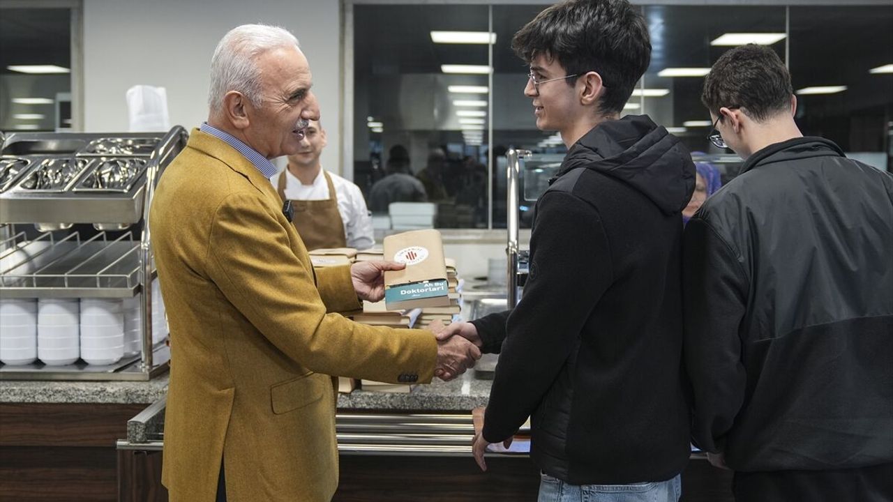 Belediyenin yemekhanesinde akşam yemeği hizmetinden ücretsiz yararlanan 553 üniversite öğrencisine yönelik düzenlenen etkinlikte, öğrencilerin tatlı tabaklarına kitaplar bırakıldı.