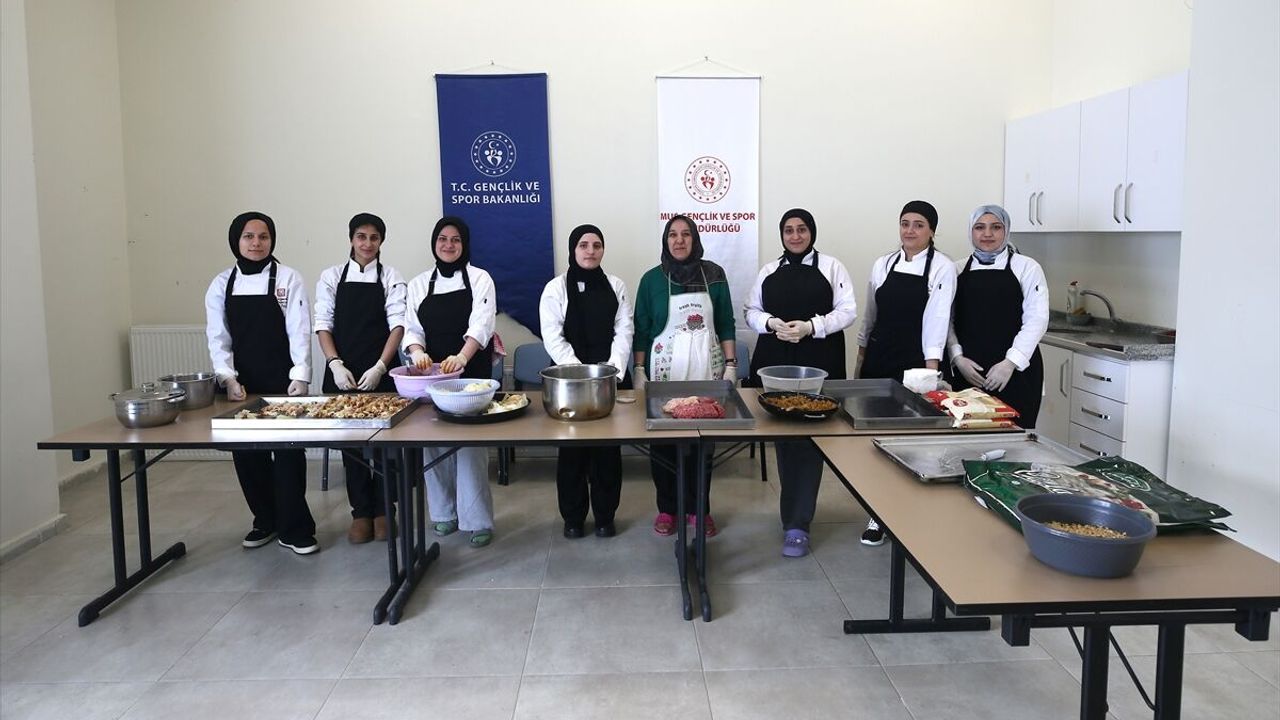 MUŞ (AA) - İBRAHİM YALDIZ - Muş'ta yurtlarda düzenlenen 'Ninemin Tarifleri Atölyesi'nde üniversiteli kız öğrenciler, geleneksel tariflerle yöresel yemekleri öğreniyor.