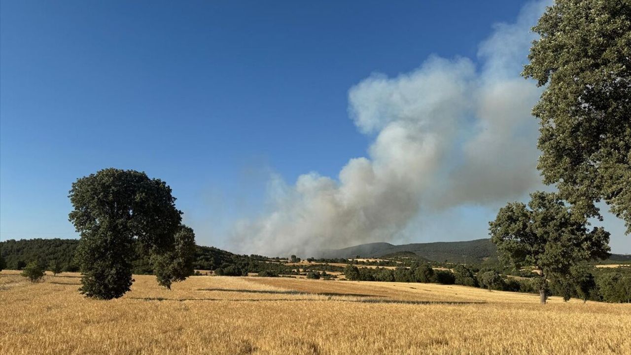 Rüzgarın etkisiyle kısa sürede geniş bir alana yayılan alevler, Uşak'ın Eşme ilçesi Eşmetaş köyü yakınlarına ulaştı.