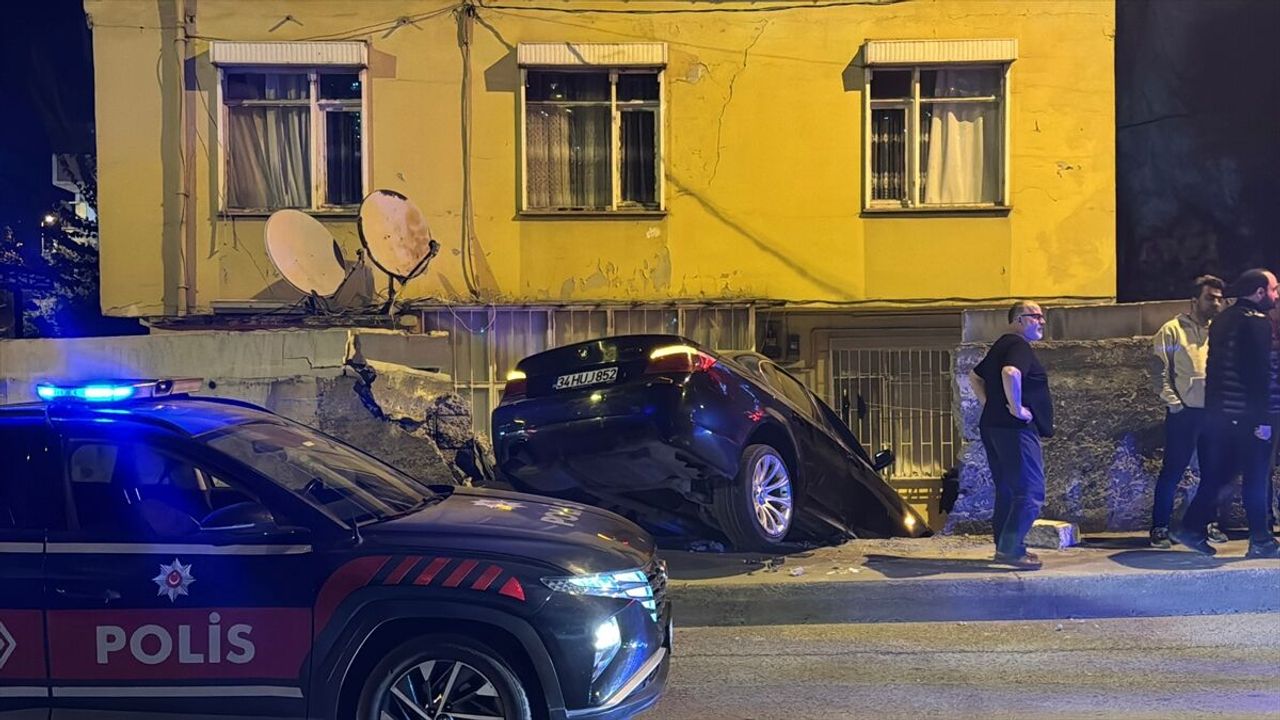 Ünalan Mahallesi Barajyolu Alt Sokak'ta sürücüsünün kontrolünden çıkan 34 HUJ 852 plakalı otomobil, kaldırımı aşıp bir binanın bahçe duvarına çarptı. Çarpmanın etkisiyle duvarın bir kısmı yıkılırken, otomobil kaldırım ile binanın bahçesi arasında asılı kaldı.