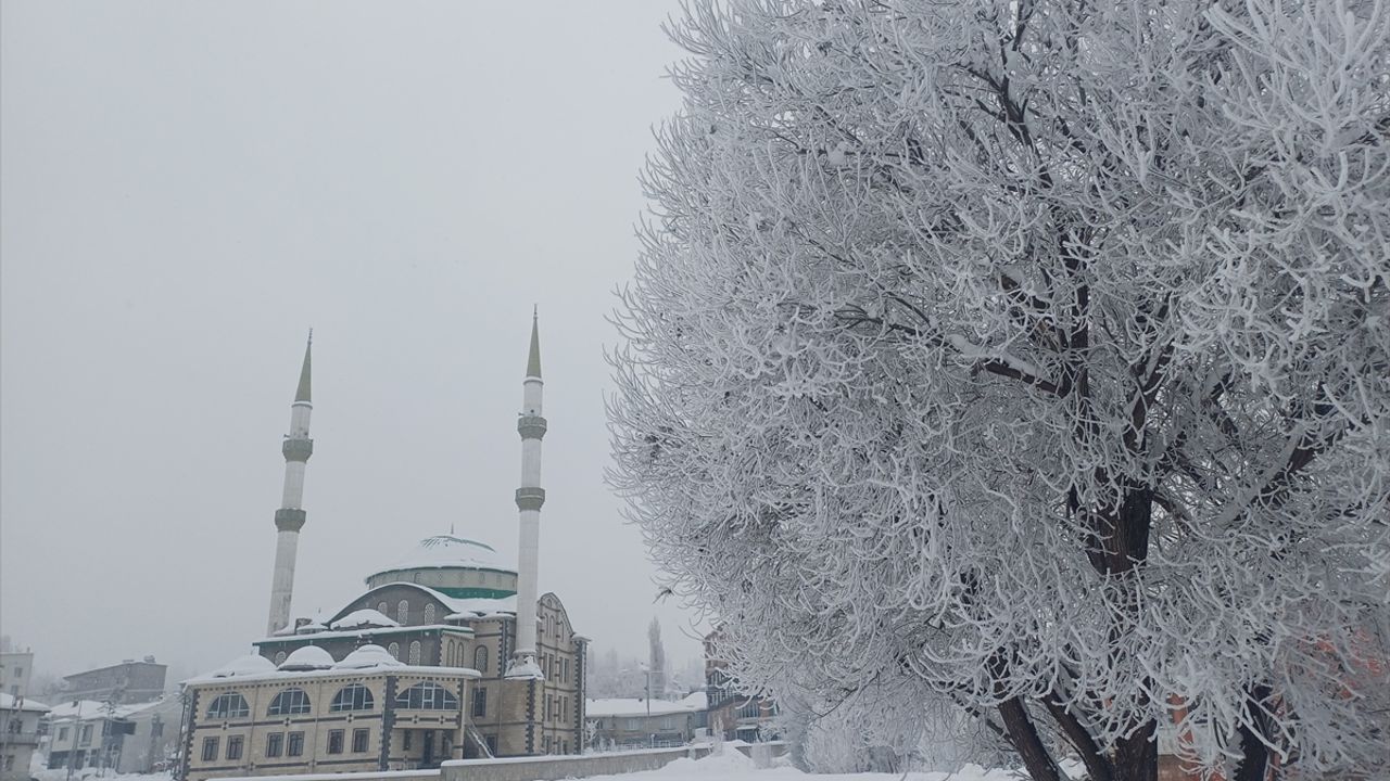 Soğuk havanın etkisini sürdürdüğü kentte, ağaçlar kırağıyla kaplandı.