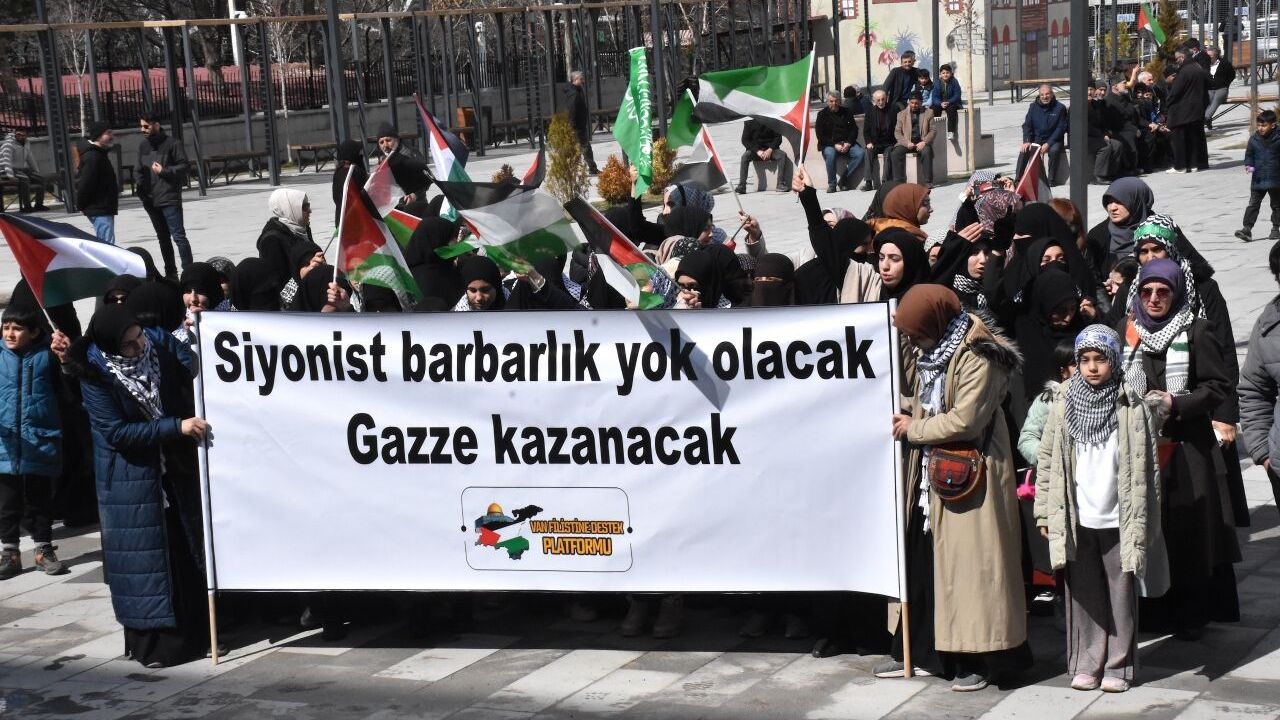 VAN (AA) - Van'da, Filistin'e Destek Platformu öncülüğünde bir araya gelenler, İsrail'in Gazze'ye yönelik saldırılarını protesto etti.
