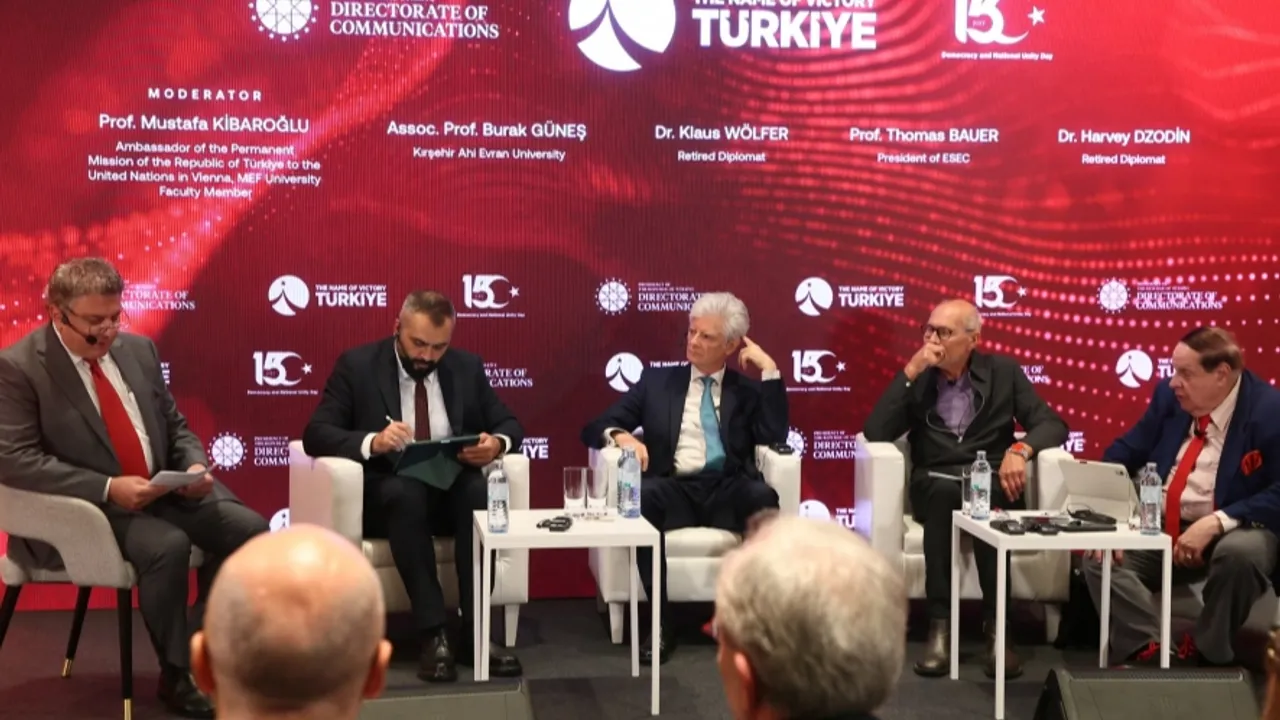 İletişim Başkanlığı'ndan aktarılan habere göre panel, Prof. Dr. Mustafa Kibaroğlu’nun moderatörlüğünde; Doç. Dr. Burak Güneş, emekli diplomat Dr. Klaus Wölfer, Prof. Dr. Thomas Bauer ve Dr. Harvey Dzodin’in katılımıyla yapıldı.Büyükelçi Dönmez, Türk milletinin 15 Temmuz 2016’daki darbe girişimine karşı tarihi bir direniş sergilediğini vurguladı.