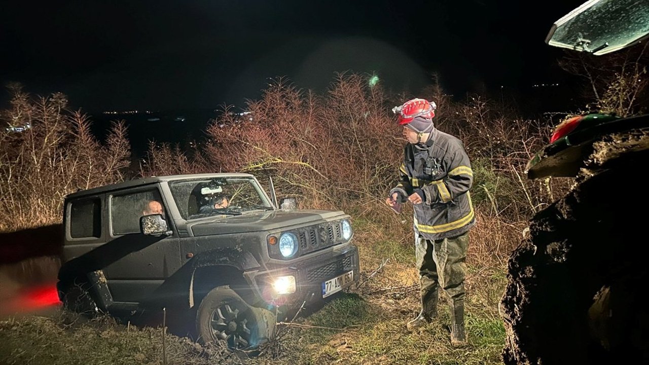 YALOVA (AA) - Yalova'nın Çiftlikköy ilçesinde çamura saplanan cipte mahsur kalan 2 kişi ekiplerin 6 saatlik çalışmasıyla kurtarıldı.