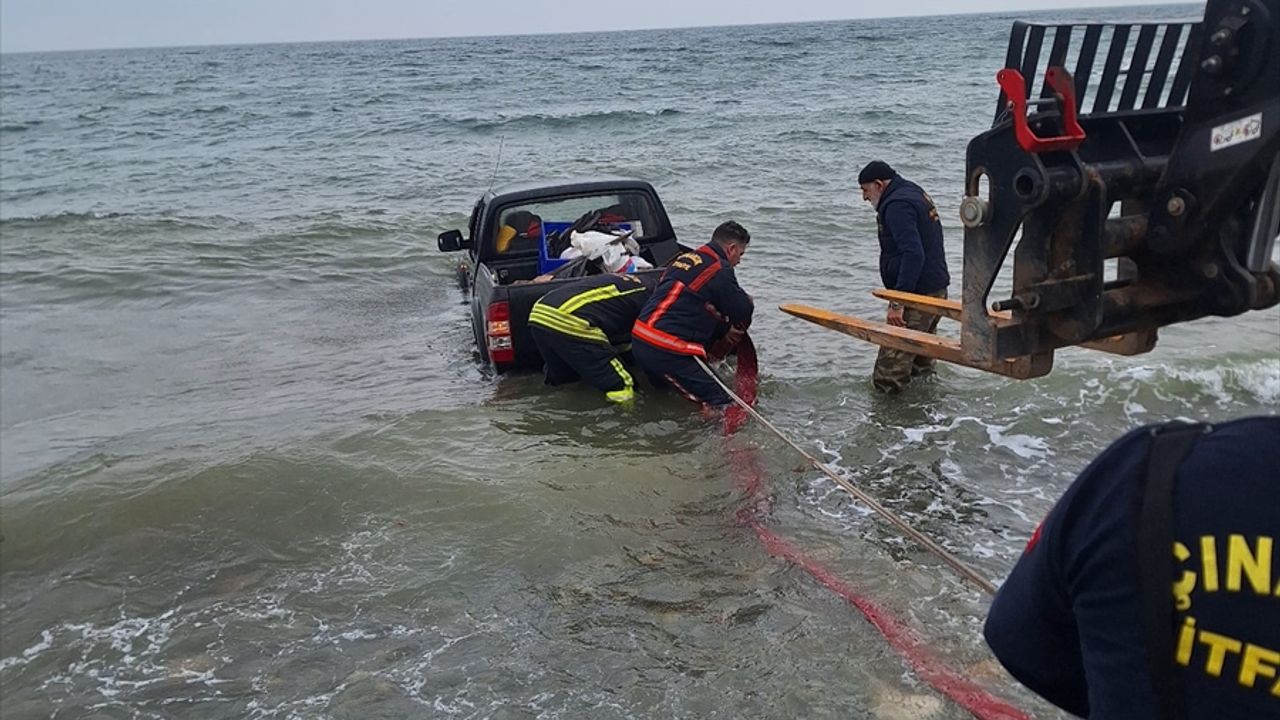 İhbar üzerine olay yerine gelen Çınarcık Belediyesi itfaiye Müdürlüğü ekipleri, sürücüyü ve aracı kıyıya çıkardı.