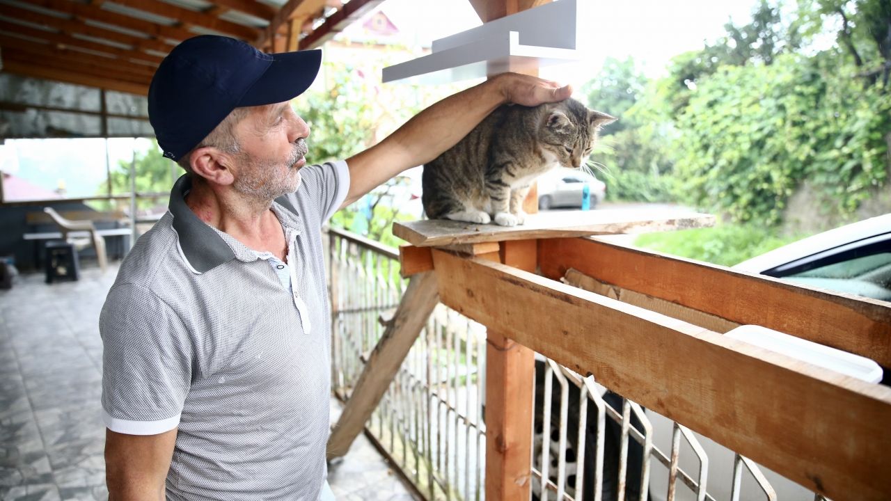 GİRESUN (AA) - GÜLTEKİN YETGİN - Giresun'da bazıları engelli 25 kedinin yaşama tutunmasını sağlayan Temel Sezer, sahipsiz kediler için de her gün belirli noktalara mama bırakıyor.
