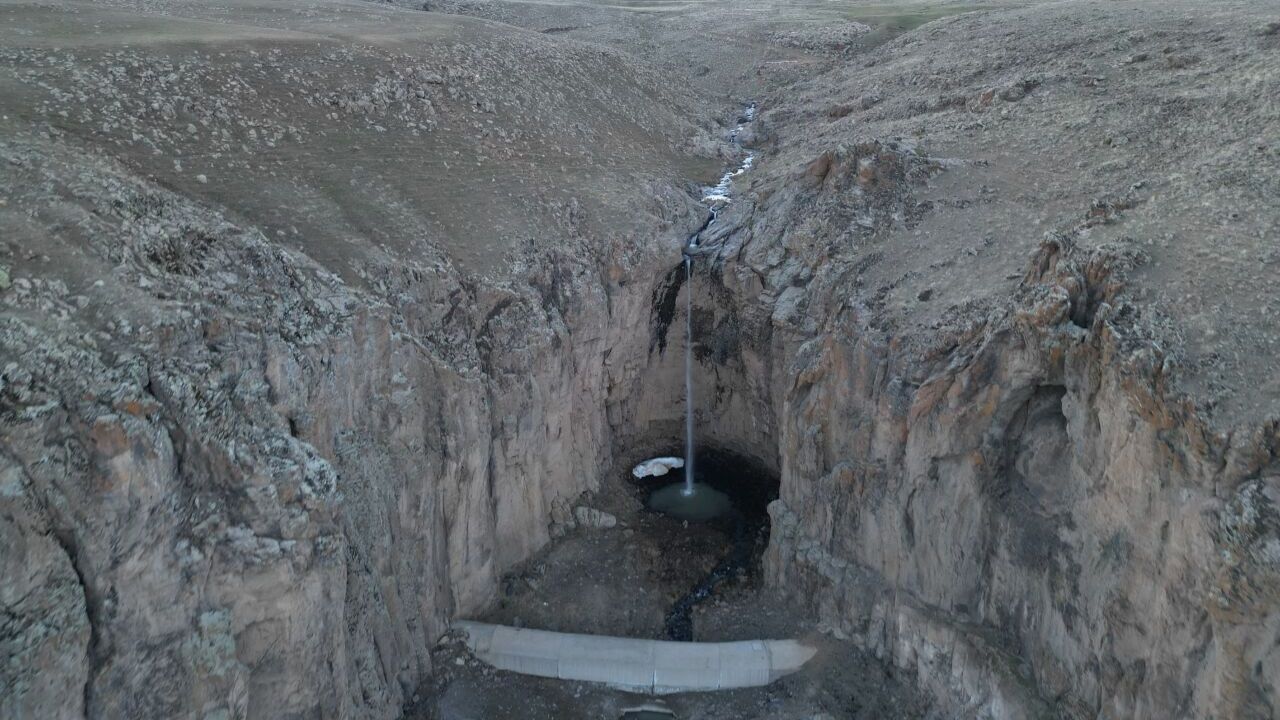 Karların erimeye başlamasıyla yeniden akmaya başlayan şelale, kanyonun ortasından dökülen sularıyla dikkati çekiyor.