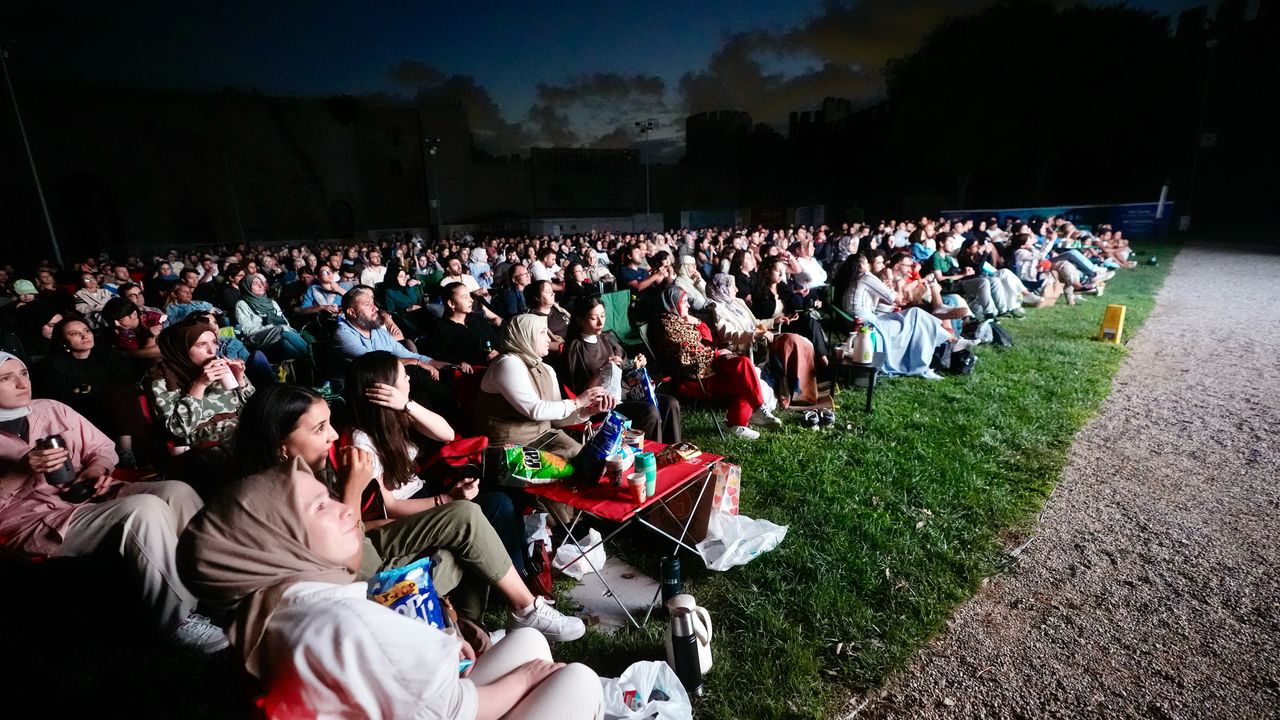 Dev ekranda film gösterimi, hem tarihi atmosferi hem de sinema keyfini bir araya getirerek izleyicilere farklı bir deneyim fırsatı sundu.