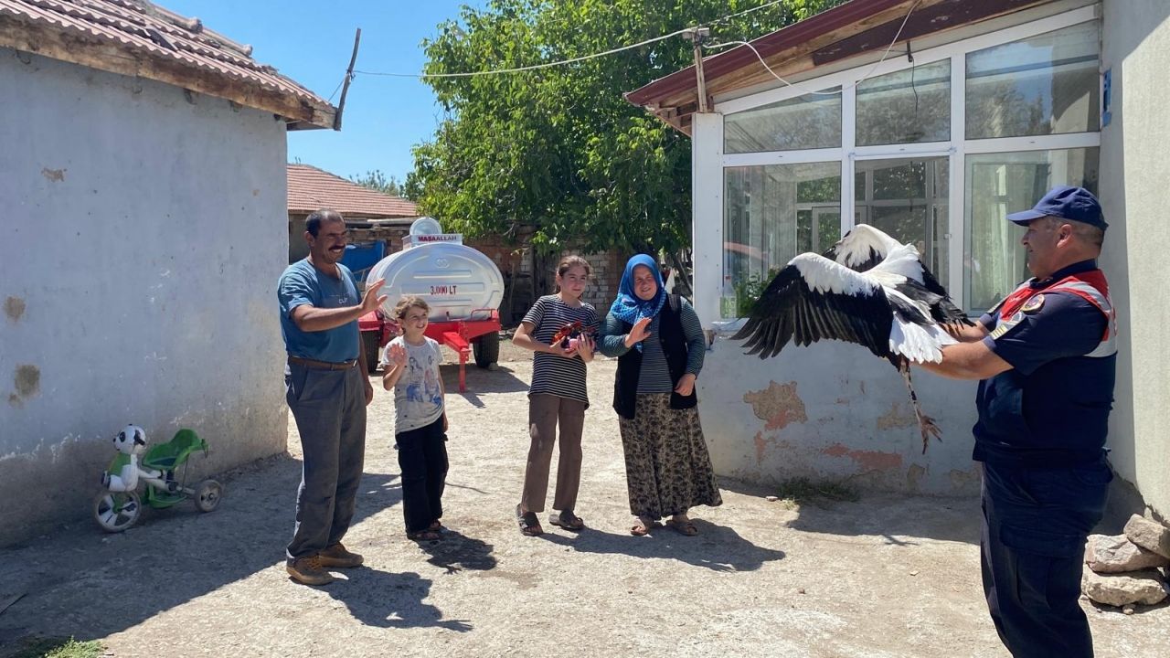 YOZGAT (AA) - Yozgat'ın Yerköy ilçesine bağlı Saray köyünde yaşayan Tufaner ailesi, kızlarının cami avlusunda yaralı halde bulup bakımının üstlendiği leyleği jandarma ekiplerine teslim etti.