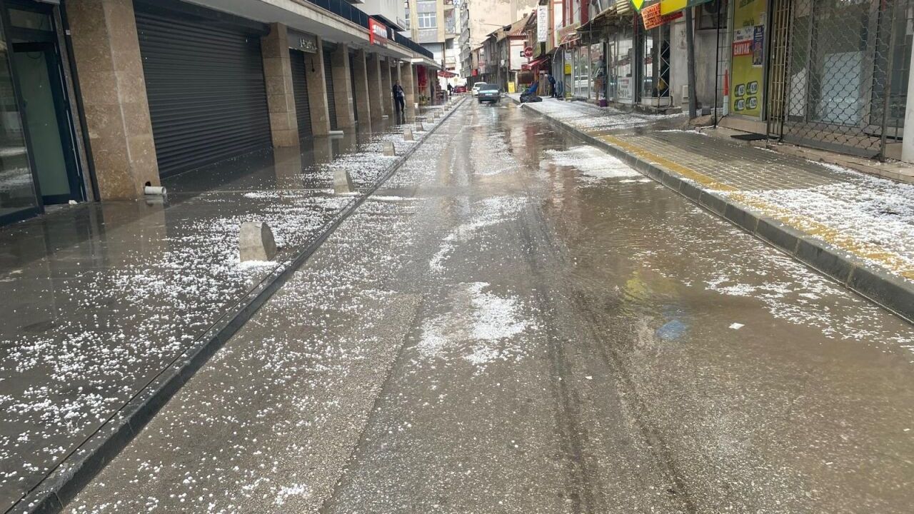 Kent merkezinde yaklaşık 15 dakika süren dolu yerini sağanak yağışa bıraktı.