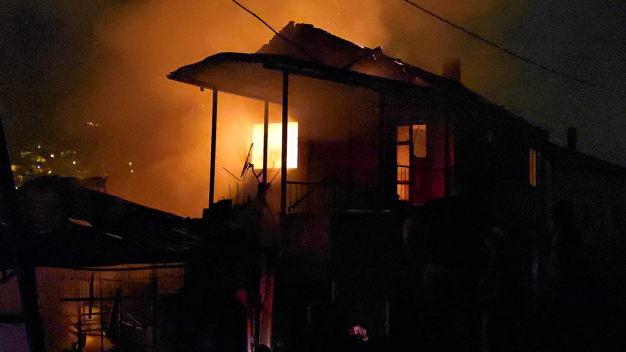 Patlamanın ardından çıkan yangın, 4 eve sıçradı.