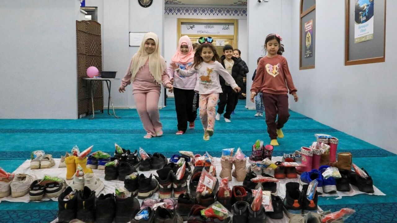 Namaz çıkışı ayakkabılarında sürpriz hediyeler bulan çocuklar, sevinç ve şaşkınlığı bir arada yaşadı.