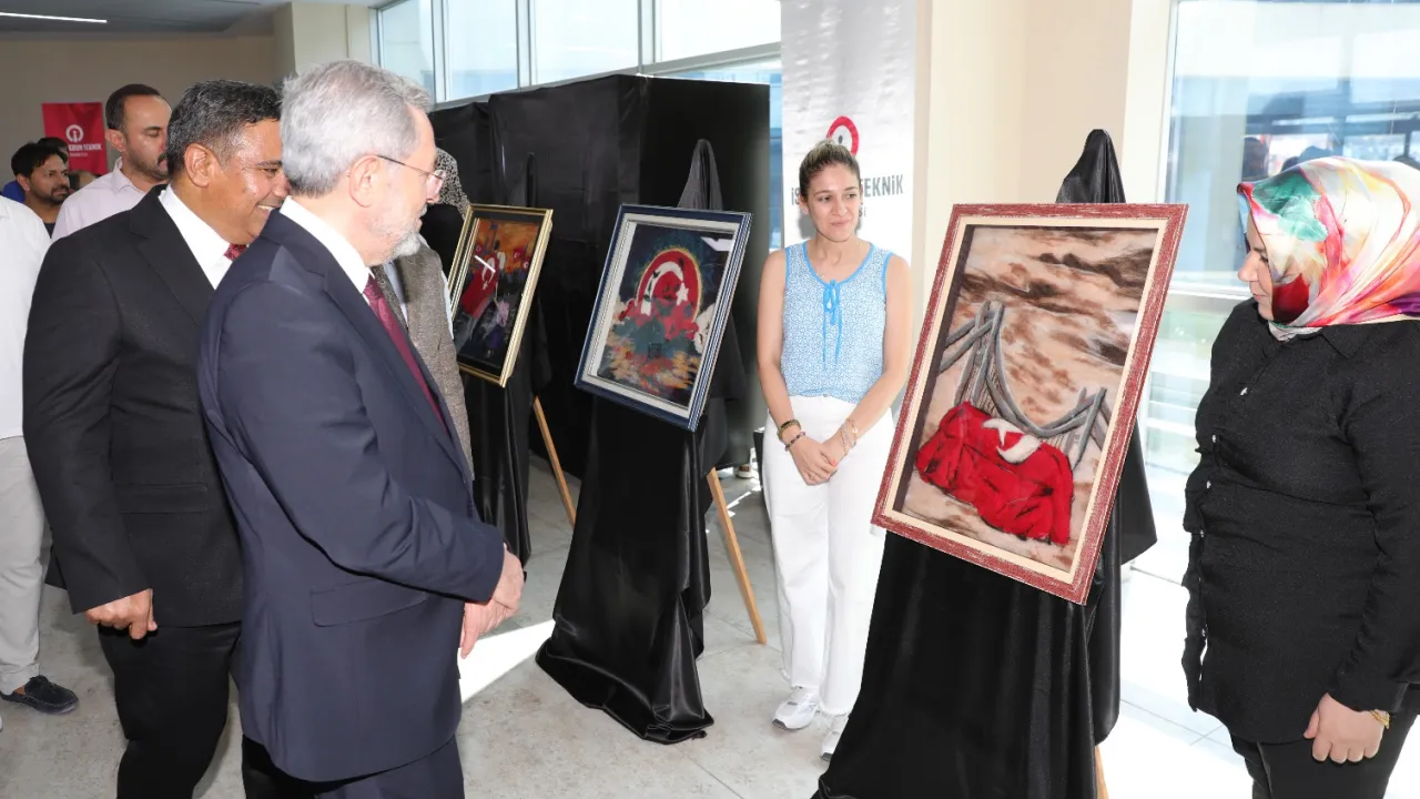 “15 Temmuz” temalı keçe sanatı sergisinin açılışıyla devam eden programda davetliler, özenle hazırlanan eserleri incelerken, etkinlik, katılımcılara aşure ikramıyla sona erdi.