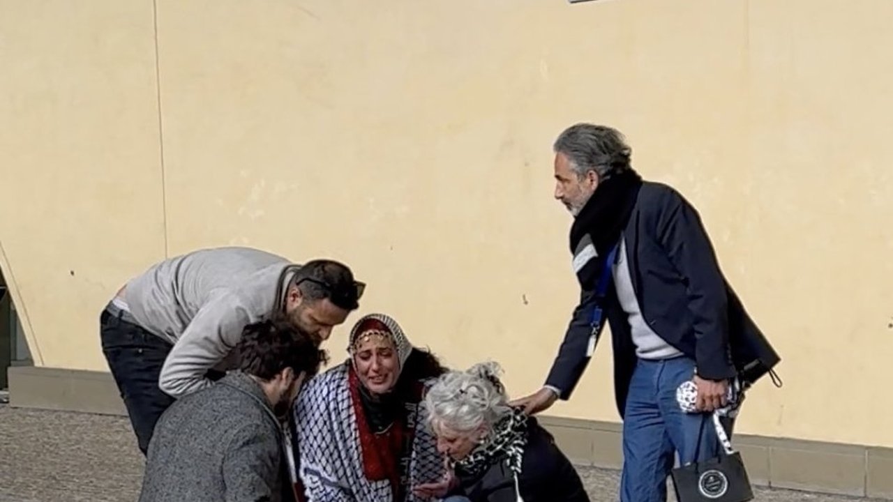Yüksek sesle "Artık dayanamıyorum", "Sessizliğiniz suç ortaklığı", "Gazze'de soykırım var" ifadelerini kullanan kadın, "Gazze" diye haykırarak ağıt yaktı.