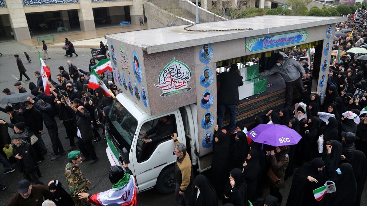 Cenazeleri karşılayan İranlılar, ABD ve İsrail aleyhine sloganlar attı.