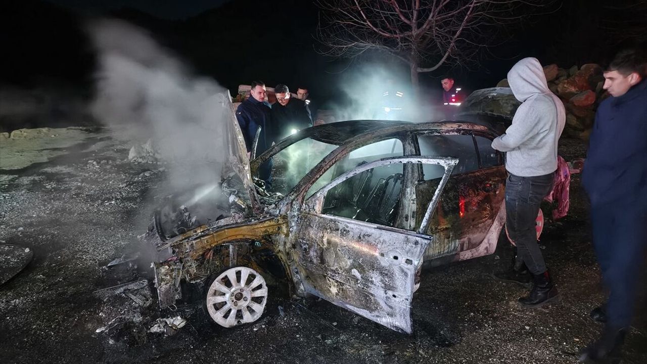 Ekiplerin müdahalesiyle söndürülen yangında, araç kullanılamaz hale geldi.