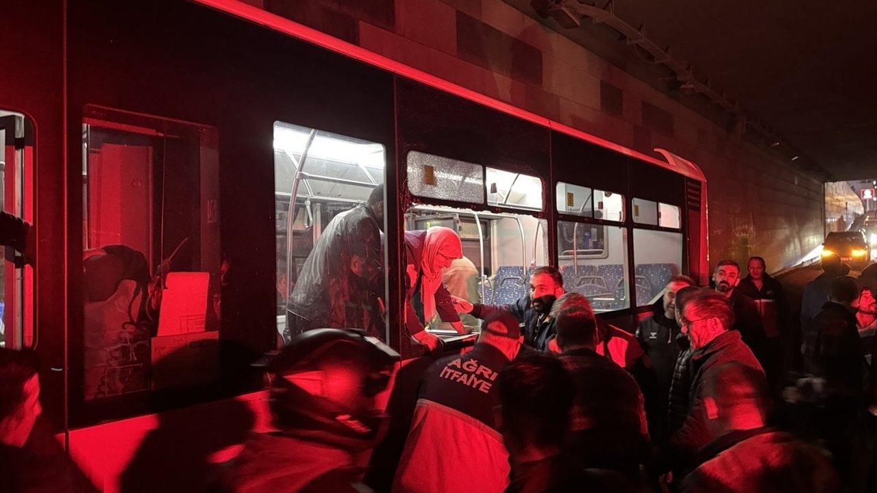 AĞRI (AA) - Ağrı'da, alt geçitte duvara çarpan belediye otobüsünün yolcuları, aracın camları kırılarak tahliye edildi.