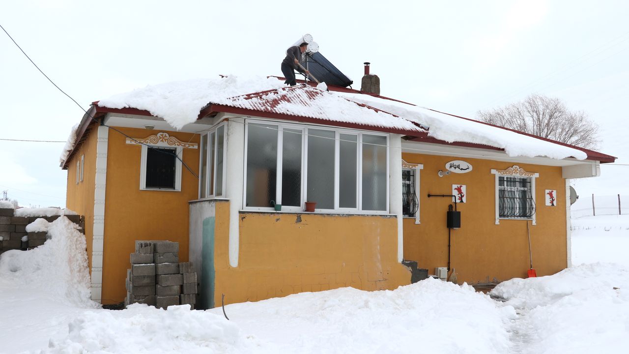 Ağrı'da aralıklarla etkili olan kar yağışı nedeniyle evler ve çevredeki yapılar beyaza büründü. Bazı vatandaşlar, çatı ve damlarda biriken karı küreklerle temizledi.